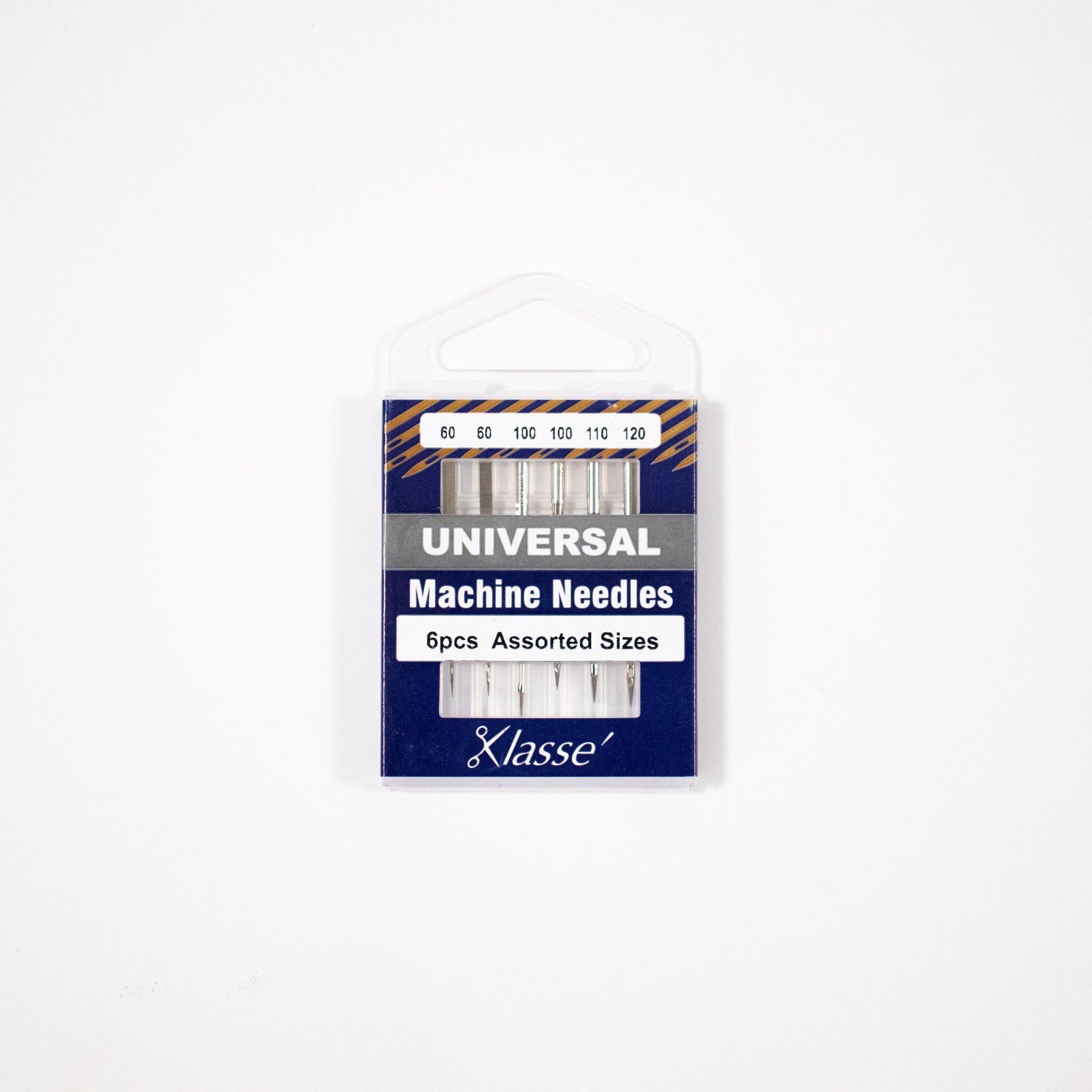 Klassé Universal Needles are ideal for most fabrics. Available in sizes 70/10, 75/11, 80/12, 90/14, an assorted pack which includes sizes 60/8, 100/16, 110/18, 120/20 and in titanium size 75/11.