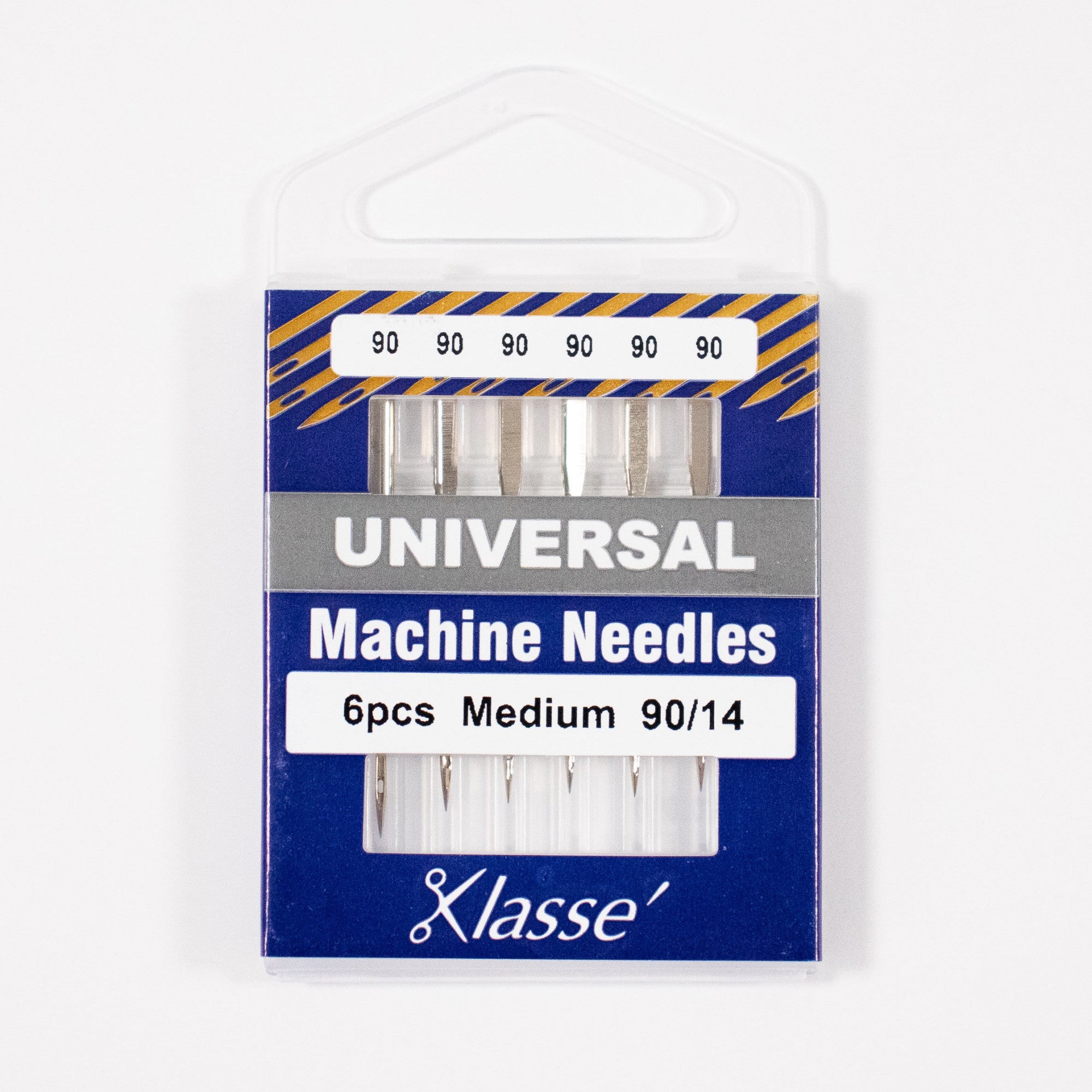 Klassé Universal Needles are ideal for most fabrics. Available in sizes 70/10, 75/11, 80/12, 90/14, an assorted pack which includes sizes 60/8, 100/16, 110/18, 120/20 and in titanium size 75/11.