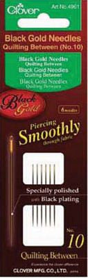 Velvety smooth, sharp point is polished along the axis for effortless piercing - offers 30% less friction than conventional hand sewing needles. Black-plating enhances rust resistance. Long lasting. Made of stainless steel. Gold Eye. Size 12. 6 needles/package.
